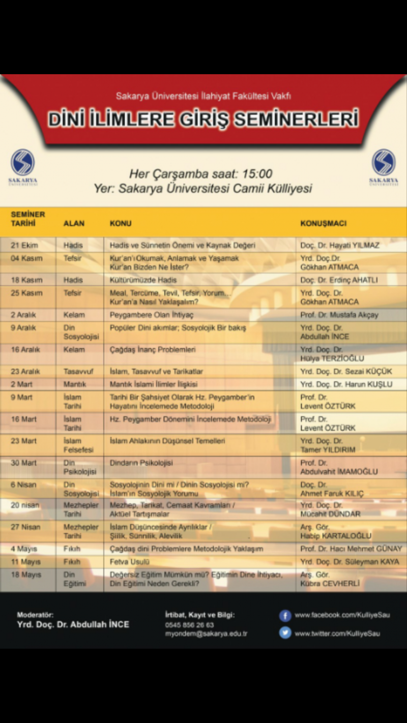 SAÜ İlahiyat Fakültesi tarafından düzenlenen konferans ve panel programları, öğrenci kulüplerinin faaliyetleri vakfımızca desteklenmektedir.